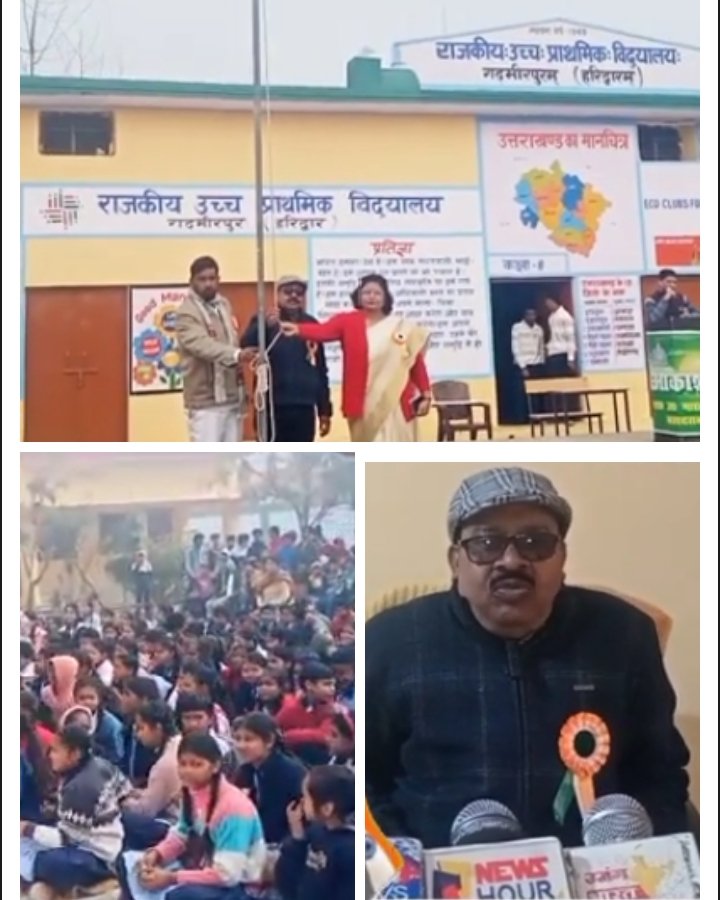 हरिद्वार। जनपद हरिद्वार के ब्रालॉक बहादराबाद के राजकीय उच्च माध्यमिक विद्यालय, राजकीय हाईस्कूल एवं प्राथमिक विद्यालय में 77वां गणतंत्र दिवस पूरे हर्षोल्लास, गरिमा एवं देशभक्ति के वातावरण में मनाया गया। समारोह का विधिवत शुभारंभ विद्यालय परिसर में प्रधानाध्यापक रमेश शाक्य द्वारा ध्वजारोहण के साथ किया गया। ध्वजारोहण के उपरांत राष्ट्रगान गाया गया और तिरंगे को सलामी दी गई। इस अवसर पर प्रधानाध्यापक रमेश शाक्य ने विद्यार्थियों को संबोधित करते हुए भारतीय संविधान के महत्व, नागरिक अधिकारों एवं कर्तव्यों पर विशेष प्रकाश डाला। उन्होंने कहा कि गणतंत्र दिवस केवल एक राष्ट्रीय उत्सव नहीं है, बल्कि यह हमें यह स्मरण कराता है कि हर नागरिक के अधिकारों के साथ-साथ कर्तव्यों का पालन करना भी समान रूप से आवश्यक है। उन्होंने विद्यार्थियों को अनुशासन, ईमानदारी, राष्ट्रभक्ति और समाज के प्रति जिम्मेदारी की भावना विकसित करने के लिए प्रेरित किया। प्रधानाध्यापक रमेश शाक्य ने अपने संबोधन में यह भी बताया कि संविधान हमारी लोकतांत्रिक व्यवस्था की आधारशिला है और इसका पालन प्रत्येक नागरिक का नैतिक एवं सामाजिक दायित्व है। उन्होंने विद्यार्थियों को प्रोत्साहित किया कि वे न केवल अपने शैक्षणिक जीवन में उत्कृष्टता प्राप्त करें, बल्कि समाज में अच्छे नागरिक के रूप में भी योगदान दें। उनके विचारों ने विद्यार्थियों के मन में देशभक्ति और कर्तव्यनिष्ठा की भावना को और प्रबल किया। कार्यक्रम में शिक्षिका हेमलता सहित विद्यालय के समस्त शिक्षक-शिक्षिकाओं एवं कर्मचारियों की सक्रिय सहभागिता रही। विद्यार्थियों ने देशभक्ति से ओत-प्रोत कविताएं, भाषण और सांस्कृतिक प्रस्तुतियां दीं, जिनमें भारत के सांस्कृतिक विविधता, स्वतंत्रता संग्राम की गौरव गाथाएं और संविधान के महत्व को रेखांकित किया गया। उपस्थित अभिभावकों व अतिथियों ने इन प्रस्तुतियों की सराहना की और विद्यार्थियों के उत्साह एवं प्रतिभा की प्रशंसा की। पूरा विद्यालय परिसर ‘भारत माता की जय’ और ‘वंदे मातरम्’ के जयघोष से गूंज उठा। समारोह के अंत में विद्यार्थियों को मिष्ठान वितरित किए गए और कार्यक्रम के सफल एवं शांतिपूर्ण आयोजन के लिए विद्यालय परिवार की प्रशंसा की गई। इस आयोजन ने विद्यार्थियों के मन में देशप्रेम, राष्ट्रीय एकता, अनुशासन और संविधान के प्रति सम्मान की भावना को और अधिक सुदृढ़ किया। प्रधानाध्यापक रमेश शाक्य के मार्गदर्शन और शिक्षकों की सक्रिय सहभागिता से यह समारोह न केवल शैक्षणिक दृष्टि से महत्वपूर्ण रहा, बल्कि यह विद्यार्थियों के नैतिक और सामाजिक विकास का भी एक प्रेरक अवसर बन गया।