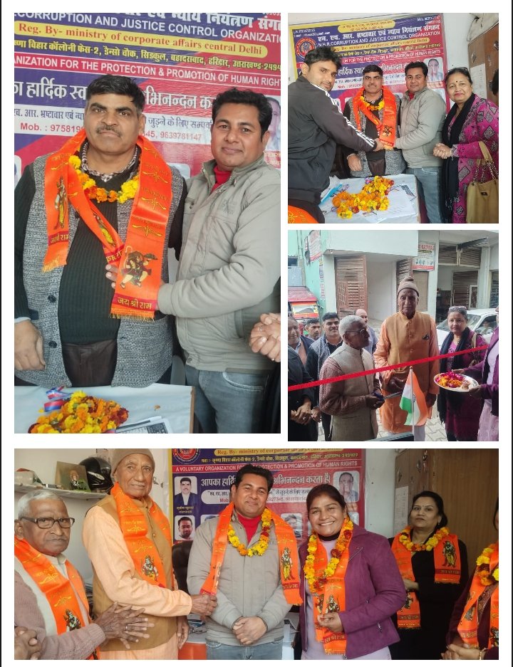 हरिद्वार। कृष्णा बिहार कॉलोनी, फेज-2, डेंशो चौक में NHR भ्रष्टाचार एवं न्याय नियंत्रण संगठन के राष्ट्रीय कार्यालय का शुभारंभ अत्यंत गरिमामय एवं उत्साहपूर्ण वातावरण में किया गया। यह आयोजन संगठन के इतिहास में एक महत्वपूर्ण पड़ाव साबित हुआ, जहाँ संगठन को जमीनी स्तर पर और अधिक मजबूत करने हेतु ठोस रणनीतियों पर मंथन किया गया। राष्ट्रीय कार्यालय में आयोजित बैठक के दौरान संगठन के पदाधिकारियों एवं सदस्यों ने भ्रष्टाचार के विरुद्ध निर्णायक संघर्ष, न्याय नियंत्रण व्यवस्था को सुदृढ़ करने तथा पीड़ितों को त्वरित न्याय दिलाने के लिए सामूहिक रूप से कार्य करने का संकल्प लिया। वक्ताओं ने कहा कि NHR संगठन समाज में व्याप्त भ्रष्टाचार के खिलाफ आवाज़ बुलंद करने के साथ-साथ आम नागरिकों का भरोसा भी बनेगा। इस अवसर पर संगठन के अनेक समर्पित साथी उपस्थित रहे, जिनमें मुकेश कुमार, रामेश्वर प्रसाद, रोहित चौहान, रमाकांत कुशवाह, आचार्य जी, पंकज कुमार, श्री भगत सिंह, एस.के. वर्मा, राकेश कुमार, नरेंद्र सिंह,मनोज कुमार, एस.पी. मौर्या, धर्म सिंह पाल सहित महिला साथियों में श्रीमती मंजू जी, श्रीमती कविता जैन जी एवं श्रीमती सुषमा शर्मा जी प्रमुख रूप से शामिल रहीं। इनके अतिरिक्त अन्य साथियों की भी सक्रिय उपस्थिति रही। बैठक के दौरान संगठन ने महिला शक्ति को सशक्त बनाने की दिशा में अहम निर्णय लेते हुए श्रीमती मंजू जी को महिला विंग की जिला अध्यक्ष के रूप में नियुक्त किया। इस घोषणा का सभी सदस्यों ने करतल ध्वनि से स्वागत किया और इसे संगठन की प्रगतिशील सोच का प्रतीक बताया। कार्यक्रम के अंत में संगठन को जन-जन तक पहुँचाने, पीड़ितों को न्याय दिलाने तथा भ्रष्टाचार-मुक्त समाज के निर्माण हेतु एकजुट होकर संघर्ष करने का आह्वान किया गया। राष्ट्रीय कार्यालय का यह शुभारंभ NHR संगठन को नई दिशा और नई ताकत प्रदान करेगा।